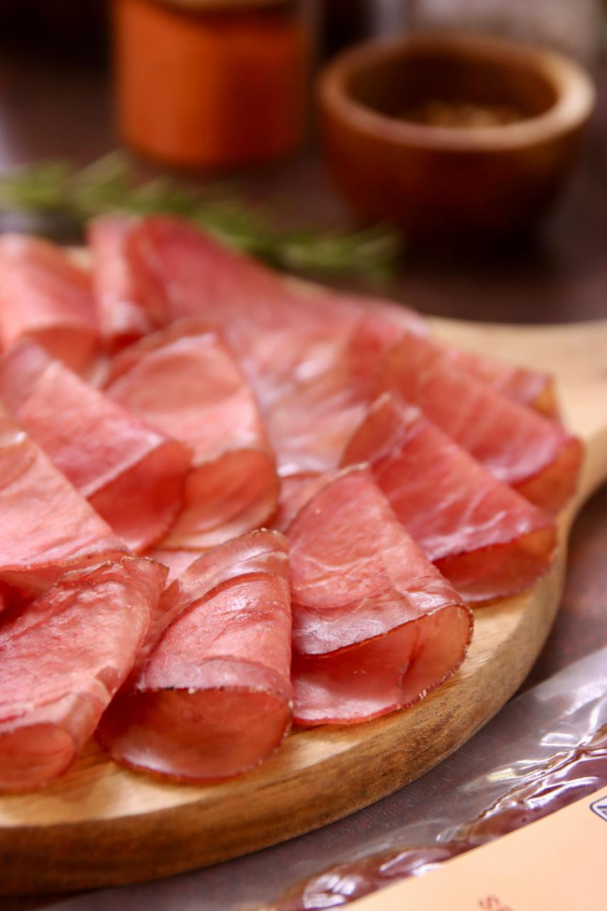 Cada fatia fina da Bresaola De Paula derrete na boca, revelando notas sutis de especiarias e um sabor equilibrado que a torna perfeita para ser servida como antipasto, acompanhada de azeite de oliva extra virgem e lascas de parmesão, ou em saladas frescas. Esta iguaria é ideal para quem busca sofisticação e autenticidade em suas refeições, oferecendo uma experiência gastronômica que celebra a tradição italiana em sua melhor forma.